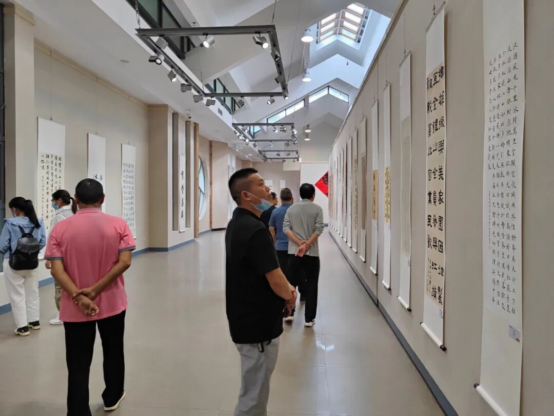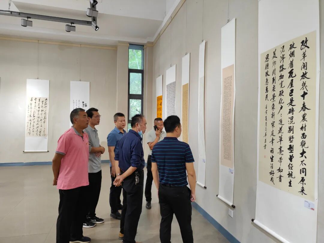 均桥镇江桥社区党支部书记王先剑、副书记殷雨华、驻村第一书记宁海,市文广新旅局人事科副科长张玉霞等人,在九江美术馆馆长胡毅的陪同下,共同参观了“助力乡村振兴 九江农民书法展”。此次展览由九江市文化广电新闻出版旅游局主办,九江美术馆、九江画院承办。活动开展过程中,九江美术馆书法家曹端阳老师对展出的书法作品进行导览。